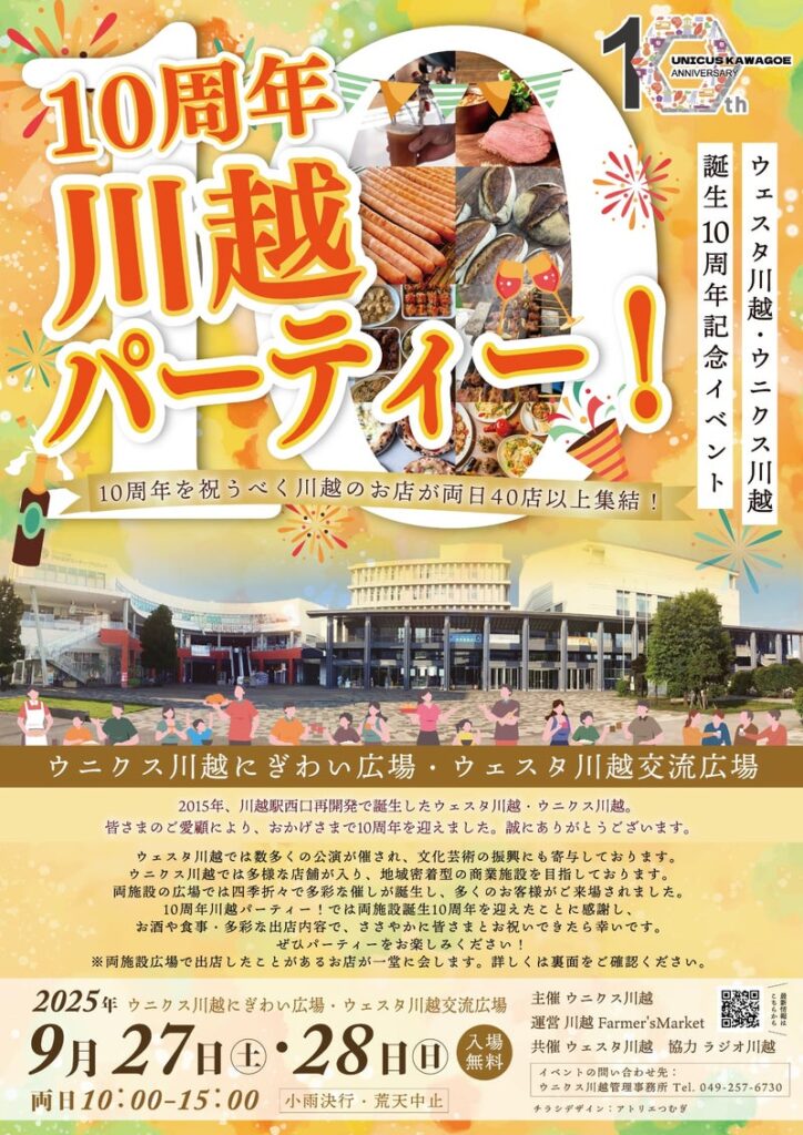 日時:2025年9月27日(土)・28日(日)時間:両日 午前10時~午後3時(小雨決行・荒天中止)場所:ウニクス川越 にぎわい広場・ウェスタ川越 交流広場 ※川越駅西口から徒歩5分( 川越川越市新宿町1-17-17)入[...]