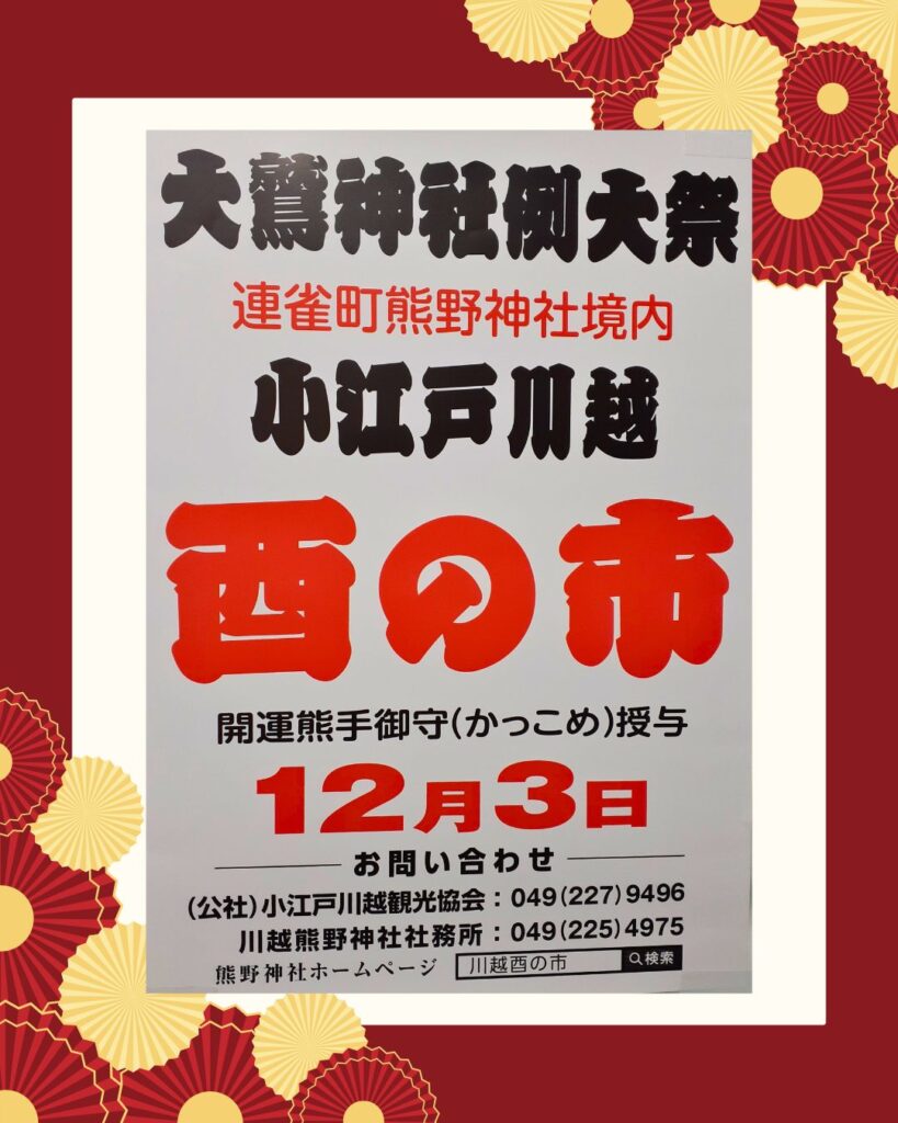 【開催日程】2025年12月3日(水)【開催場所】川越熊野神社(川越市連雀町17-1) 詳しくは公式HPからhttps://www.kawagoekumano.jp/ 出典:小江戸川越ウェブ